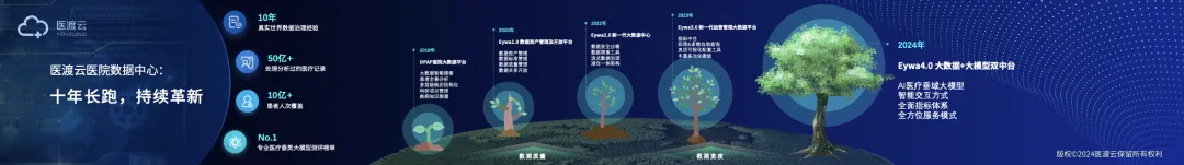醫(yī)渡云在醫(yī)療大數據與人工智能這條跑道上探索和耕耘了十年。從2019年發(fā)布的第一代數據中心逐步發(fā)展到今天的Eywa4.0,Eywa這棵數據生命之樹已經從一棵小樹苗長成了參天大樹。
