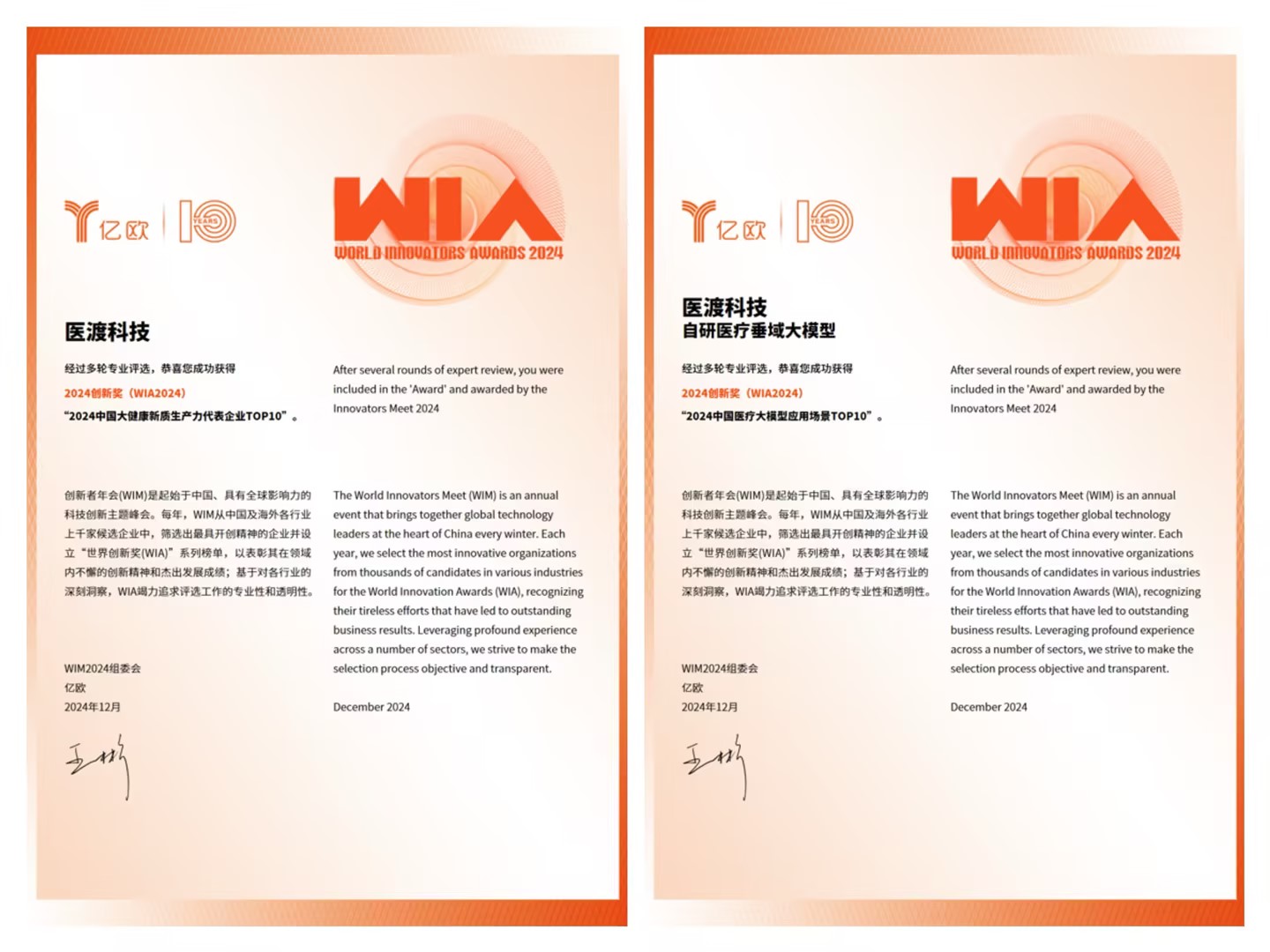 WIM2024創(chuàng)新者年會(huì)丨醫(yī)渡科技榮登新質(zhì)生產(chǎn)力與醫(yī)療大模型雙榜