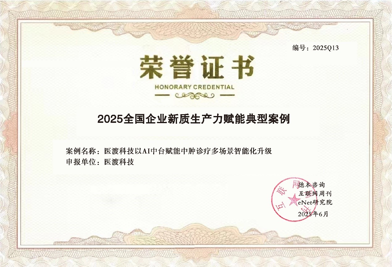 近日,醫(yī)渡科技憑借其在醫(yī)療人工智能領(lǐng)域的創(chuàng)新實(shí)踐與規(guī)?;瘧?yīng)用成果,成功斬獲兩項(xiàng)行業(yè)重磅榮譽(yù)——入選《2025全國(guó)企業(yè)新質(zhì)生產(chǎn)力賦能典型案例》,并榮膺“2025(第七屆)創(chuàng)新發(fā)展論壇金i獎(jiǎng)”之“AI醫(yī)療年度創(chuàng)新應(yīng)用突破獎(jiǎng)”。獎(jiǎng)項(xiàng)由中國(guó)科學(xué)院《互聯(lián)網(wǎng)周刊》、eNet研究院、德本咨詢聯(lián)合發(fā)布,醫(yī)渡科技斬獲雙獎(jiǎng)標(biāo)志著以“AI中臺(tái)”為核心的解決方案,在推動(dòng)醫(yī)療行業(yè)智能化升級(jí)、釋放新質(zhì)生產(chǎn)力方面獲得權(quán)威認(rèn)可。