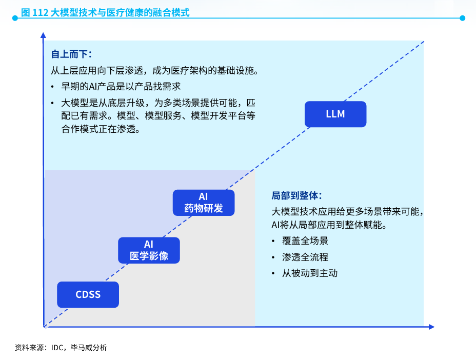 作為AI技術(shù)的重要智慧引擎,大模型技術(shù)正在通過(guò)“從局部到整體,自上而下”的方式,逐步融入醫(yī)療與生命科學(xué)的各類(lèi)場(chǎng)景。這一趨勢(shì)不僅重構(gòu)了傳統(tǒng)醫(yī)療軟件系統(tǒng)的架構(gòu)與應(yīng)用模式(如HIS、EMR、CDSS等),還借助大模型的泛化能力,為更廣泛的醫(yī)療場(chǎng)景帶來(lái)了“AI+”的創(chuàng)新機(jī)遇。