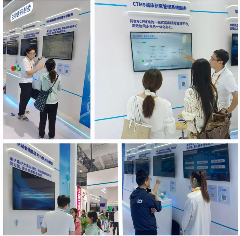在服貿(mào)會展區(qū),醫(yī)渡科技“CTMS臨床研究管理系統(tǒng)”與“智能臨床試驗受試者招募與可行性分析平臺”同步亮相,吸引了眾多與會者駐足交流、深入咨詢。